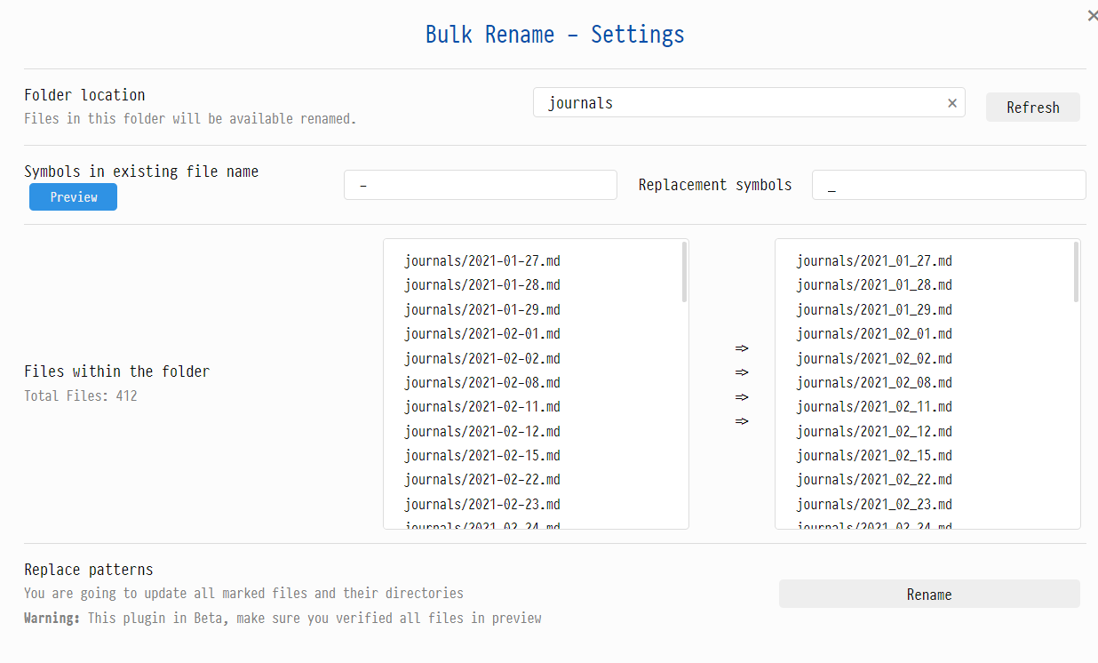Under the hood this plugin is using obsidian API for renaming, but we just applying it for many files